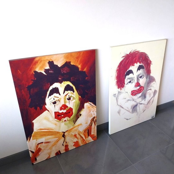 Silvio Piano, nephew of renowned architect Renzo Piano, was a prolific artist in the 1960s. These two prints, personally signed by the artist, are authentic and well-preserved—a unique opportunity for collectors and investors. The value of Silvio Piano's work is steadily increasing, thanks in part to the charm of the era and his family connection to one of Italy's greatest architects. These two Silvio Piano artworks are prints on canvas-effect resin and depict clown-like figures with a strong emotional impact. Although no certificate of authenticity is included, both prints bear the artist's handwritten signature—personally placed in his Milan studio in my presence—direct proof of the authenticity of the creative gesture. The bold brushstrokes and vibrant colors give the works a dramatic and ironic atmosphere—perfect for those who want to enhance their interior with unique décor or are looking for a potential art investment. Imagine these two pieces hanging on the wall of your study or office: they bring color, character, and immediately attract attention. With their expressive clowns and vibrant colors, they spark curiosity and tell their own story. Bring originality to your surroundings and show your passion for art with two creations full of energy and character. International hashtags: #ExpressionistArt, #ClownArt, #SilvioPiano, #ModernWallArt, #SignedPrints, #DramaticDecor, #OutsiderArt, #VintageItalianArt, #BoldColors, #ArtForInvestors, #SadClown, #RenzoPianoFamily, #ContemporaryPrints
