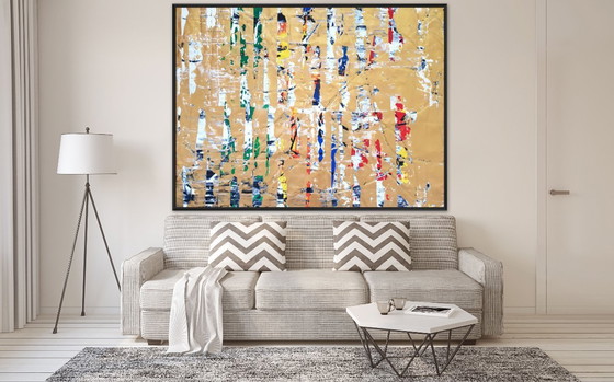 ConditionExcellentColorsGold, Yellow, Orange, Blue, Green, Red, White, Black, Multi ColorMaterialCanvasNumber of items1ArtistsJürgen AngelerFirst ownerYesOrientationLandscapeArt sizeLargeHeight100 cmWidth140 cm