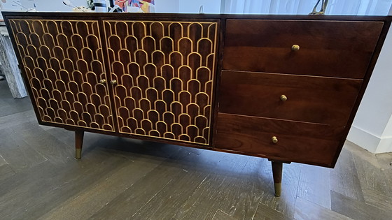 ConditionVery goodColorsGold, BrownMaterialWoodNumber of items1BrandKare DesignHeight80 cmWidth150 cmDepth40 cmSigns of usageScratches