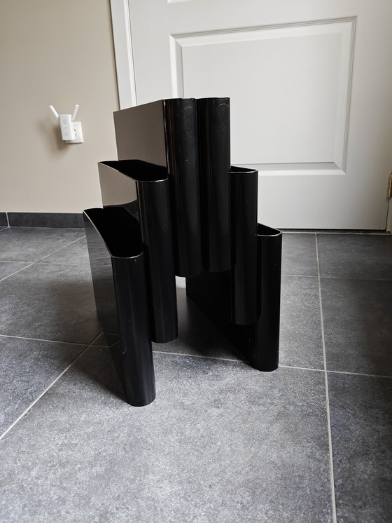 The Kartell 4675 magazine rack, designed by G. Stoppino, is a beautiful example of modern Italian design. This stylish and functional magazine rack is crafted from high-quality black plastic, which not only guarantees durability but also offers an elegant look that blends seamlessly into any interior.
