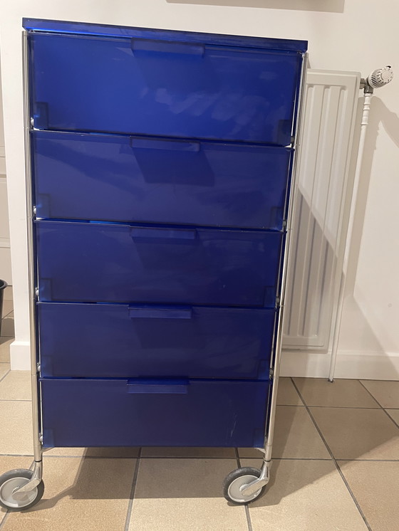 Kartell chest of drawers. Model called Mobil and designed by Antonio Citterio. Height 93 cm. Width 47.5 cm. Depth 45 cm. Retail price is €1200. Scratches on the top and light scratches on some drawers. One caster is slightly crooked and therefore doesn't turn. One drawer has a stain on the inside that won't go away.