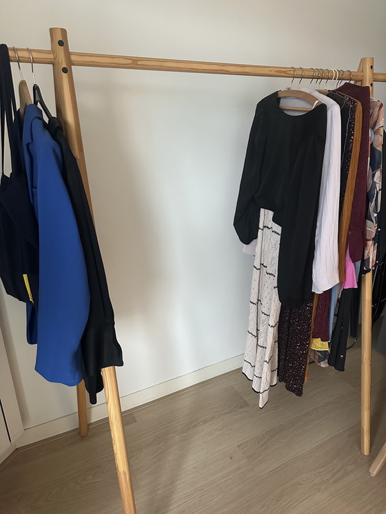 Elevate your space with this Karup Japandi-style clothing rack, crafted from solid oak hardwood. Its minimalist design seamlessly blends functionality with aesthetic appeal, perfect for any modern home. Ideal for showcasing your wardrobe with elegance.