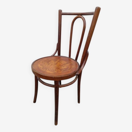 Chair model n°18 by kohn, turned wood and engraved wood seat (pirogravure), early xxéme date (1905/1910), 1 screw not original