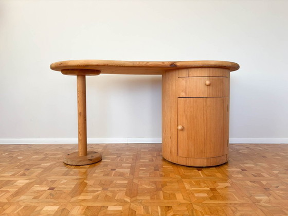 This kidney-shaped desk by CFC Silkeborg, designed in 1970, is a fine example of Danish craftsmanship from the era. Its smooth, organic shape reflects the focus on simplicity and functionality characteristic of Scandinavian design. The desk’s unique form provides both visual appeal and practical usability, making it a standout piece for any workspace or interior.