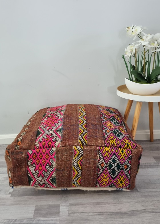 Imperfections and traces of use are normal because the poufs are made from a vintage Moroccan rug