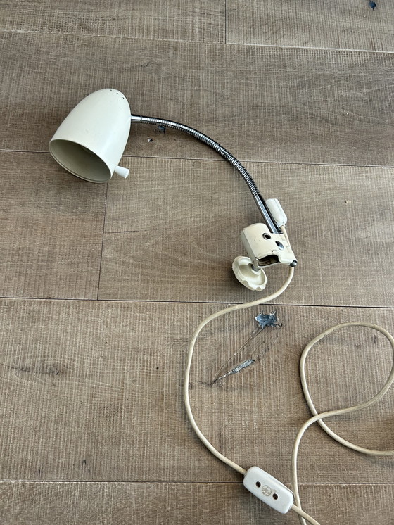 Illuminate your workspace with this charming vintage Kaiser idl clamp lamp. Its sleek design and flexible neck make it a versatile addition to any desk or work area. The creme color adds a touch of elegance, while the sturdy metal and plastic construction ensures durability. Perfect for those who appreciate classic design with a functional twist. Don't miss the chance to own this timeless piece.