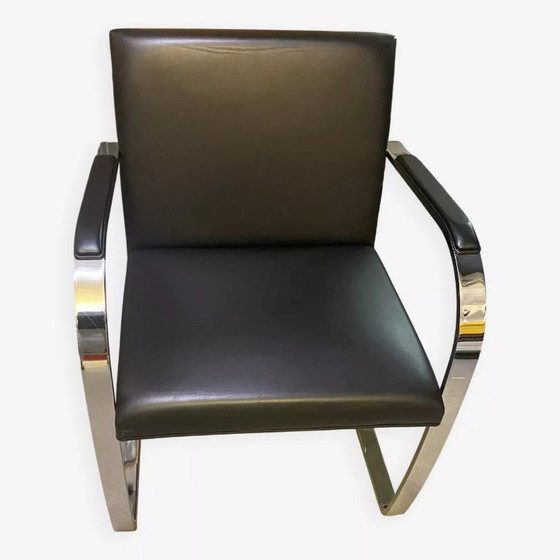 The Knoll Brno chair is one of the most elegant tubular steel cantilever chairs produced in the Bauhaus style. Designed in 1930 by Ludwig Mies van der Rohe and Lilly Reich, it is upholstered in leather and comfortably padded to accommodate participants for long conferences. The Brno chair has become a 20th-century design icon thanks to its clean lines and attention to detail, right down to the padded armrests.