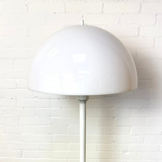 An original Space Age floor lamp designed by Knud Christensen and produced in Denmark by Knud Christensen Electric A/S. The sculptural mushroom shade and refined proportions make this an elegant statement piece for high-end residential or curated design interiors.