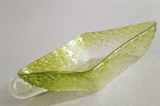 Kralik art-deco/jugendstil emerald crystal martele-decorated serving bowl with handles, 1910s-- 14x9x3cm--shipping in EU - 25€