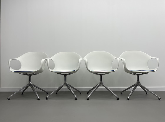 ConditionVery goodColorsWhite, SilverMaterialAluminium, PlasticNumber of items4Height83 cmWidth62 cmDepth58 cmSeat height44 cmSigns of usageChipped