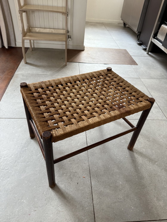 This charming woven stool.. Its woven rattan seat is nice crafted, for comfort and style, need some oil but is ready for a next chapter.