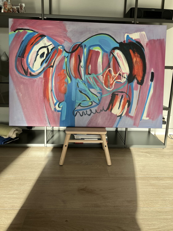 Immerse yourself in the vibrant world of abstract art with this captivating painting by Wiegen den Uyl. This piece, a harmonious blend of bold colors and dynamic forms, invites the viewer to explore its depths and discover new interpretations with each glance. Crafted on high-quality canvas, this artwork showcases a striking palette of red, blue, black, white, and pink, creating a visually stimulating experience. The abstract style of this painting allows it to complement a variety of interior designs, making it a versatile addition to any art collection. As a limited edition piece, it holds a unique place in the realm of contemporary art, offering both aesthetic pleasure and investment potential. Enhance your space with this extraordinary artwork and let it inspire conversation and admiration.