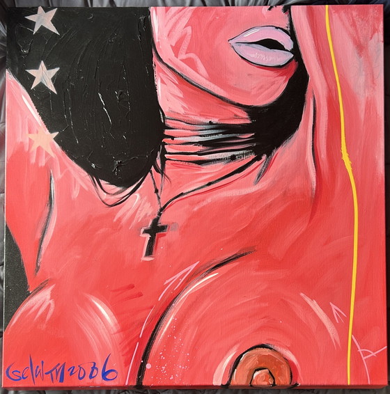 Immerse yourself in the vibrant world of contemporary art with "L'Abre Rosa" by Selwyn Senatori. This striking piece, crafted in 2006, captures the essence of modern expression with its bold use of color and dynamic composition. The artwork's vivid pink hues are contrasted with deep blacks and a touch of yellow, creating a visually arresting experience that is both provocative and thought-provoking.