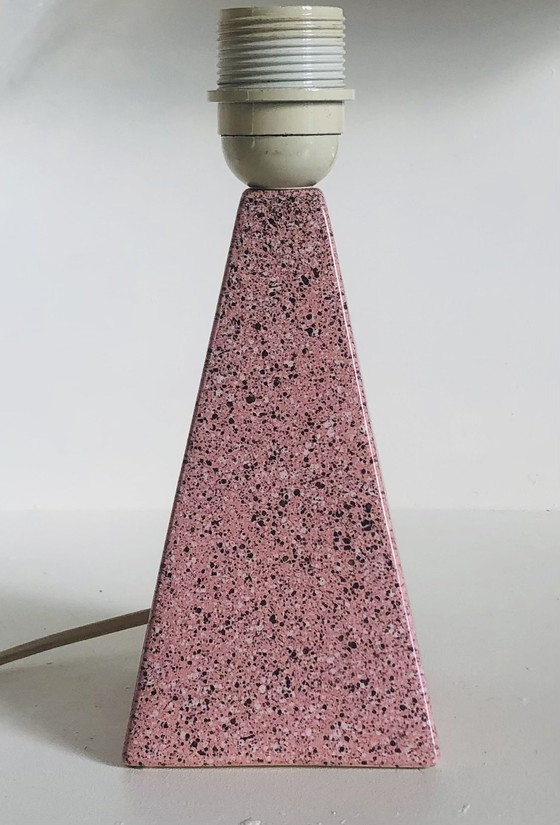 Pyramidal Brussels porcelain lamp base with an intricate decoration of speckled pink enamels reminiscent of terrazzo.