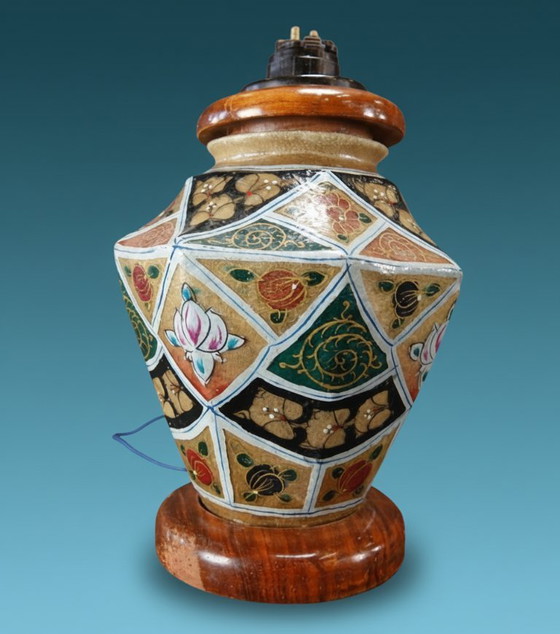 Discover the enchanting beauty of this colorful, handcrafted lamp base, crafted from animal hides and embellished with artistic patterns from Pakistan. Each piece is a masterpiece of Naqashi art, a centuries-old craft from Multan, where traditional floral and geometric motifs are carefully hand-painted. This unique lamp base adds a touch of oriental elegance and cultural richness to any space, from modern to classic, creating a warm, inviting atmosphere in your home. A perfect gift or an exclusive addition to your own interior.
