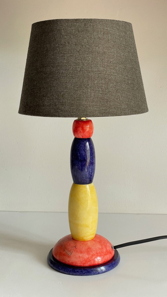 Superb LAMP in ALBATRA stone in the RARE colors Blue, Yellow and Red, the Primary Colors that so inspired the 80s. Alabaster is a natural stone similar to marble, which has the particularity of glowing when illuminated, and in the course of natural light. A chic, designer lamp for the living room, the office... and why not for a boutique... we're very, very fond of this beautiful jewel!