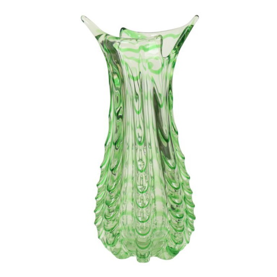 Large and impressive green glass Murano vase in the style of Dino Martens, a high-quality 1960s design object.