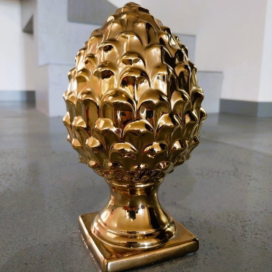Elegant decorative pine cone made of high-quality glazed ceramic with a striking gold mirror finish. A traditional Italian symbol of abundance, protection and prosperity - this piece embodies timeless symbolism and sophisticated style.