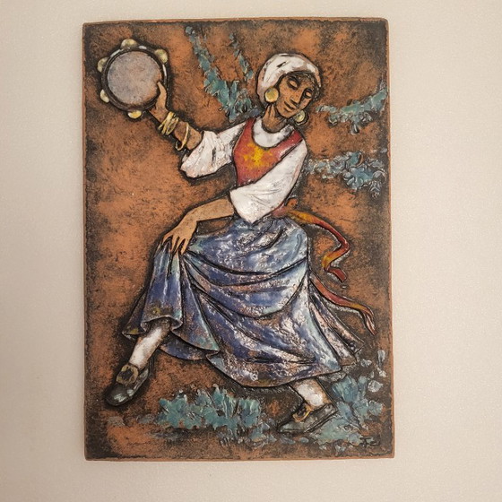 Large glazed ceramic frame with a relief of a Bohemian dancer.