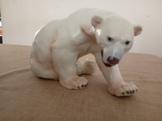 Discover the timeless elegance of this large porcelain polar bear, created by the renowned Bing & Grondahl company in 1857. This extraordinary piece captures the majesty of the polar bear with exquisite detail and a glossy finish that enhances the quality of the porcelain.