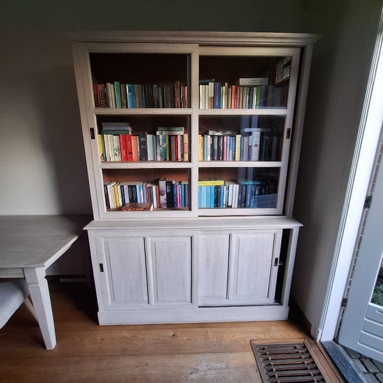 This impressive bookcase, crafted from high-quality teak, exudes robustness and elegance. The whitewash finish, carefully applied by a furniture workshop, gives it a refined and modern look that effortlessly complements any interior. With its ample storage space, this bookcase not only offers a practical solution for your book collection but also a stylish addition to your living space.