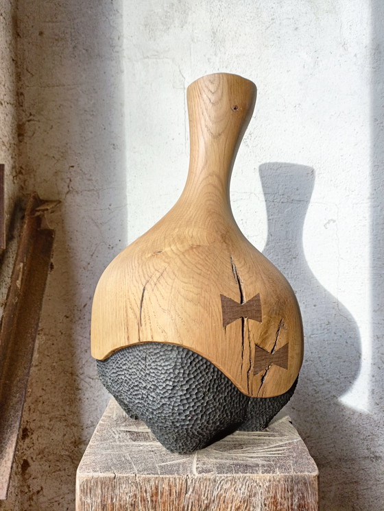 Discover this magnificent solid oak sculpture, a unique work of art that blends elegance and modernity. This sculpted vase, with its flowing lines and refined texture, is a true tribute to artisanal craftsmanship.
