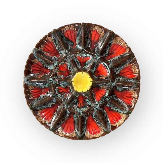 A stunning and authentic oyster dish by the renowned French ceramics workshop Vallauris. This unique dish dates from the 1960s and is a wonderful example of the colorful and organic design characteristic of this period and region.