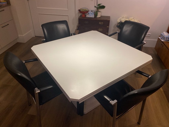 Functional Läsko dining table from the 1980s. This table combines a sleek design with practical versatility.