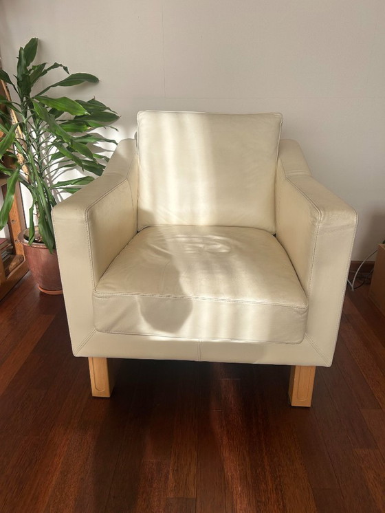 Experience the timeless elegance of the Leolux armchair, a masterpiece of modern design that seamlessly combines comfort and style. Upholstered in high-quality cream-colored leather, this armchair offers a luxurious seating experience that enhances any room. The sturdy wooden legs provide a stable base and add a natural charm.