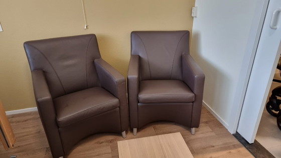 Meet these stylish Leolux Dolcinea armchairs, perfect for any modern living room. This set of two chairs offers not only comfort but also a touch of elegance with their clean lines and high-quality leather upholstery.