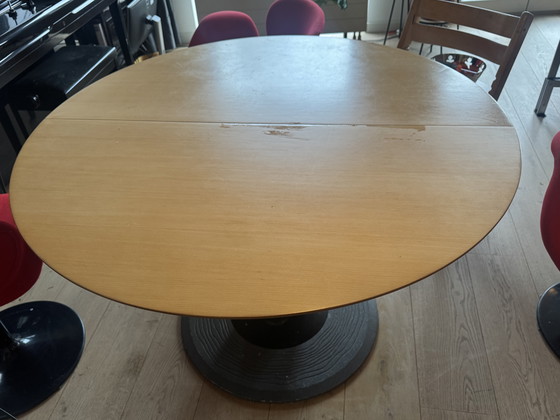 A lovely table from Leolux. Conveniently, you can make it round with a diameter of 120cm or, with an insert, 179cm. Height: 76.5cm.