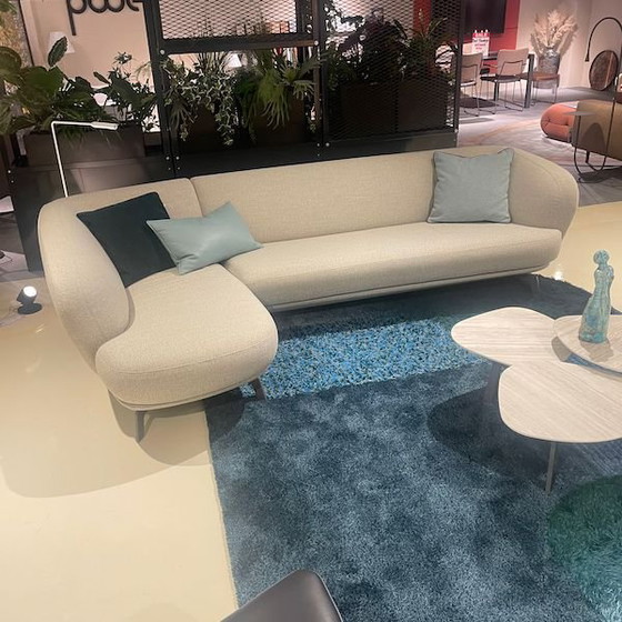 Leolux Flint chaise longue * Upholstery: Varese 22 Angora fabric * Design: chaise longue arm left and end element diagonal XL * Yarn: tone-on-tone * Base: Fino Epoxy Nickel Silk legs * Seat height: standard