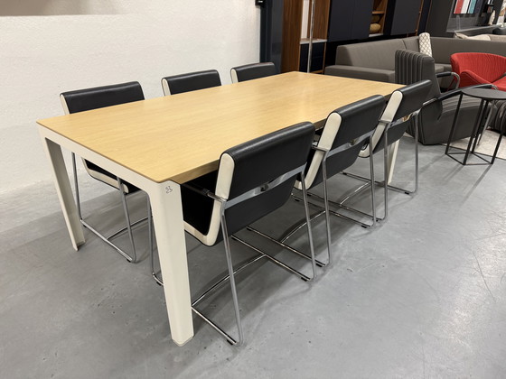 Like new: Leolux Kahlia dining table in oak. DIMENSIONS: 210 x D100 x H75cm Now for sale for €1299