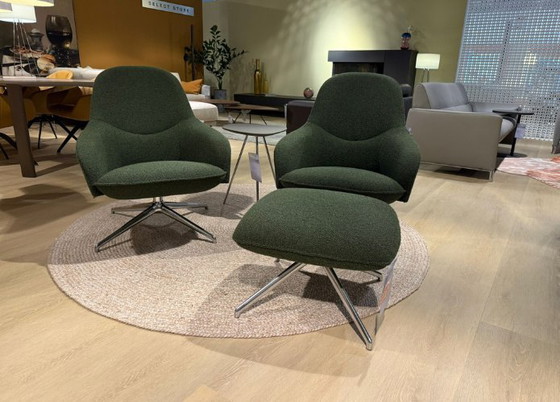 The distinctive Leolux Lanah swivel armchair is modest in size. A comfortable shell is combined with a sleekly designed base. By upholstering the front and back separately, beautiful and unique material combinations are possible. The deep seam at the front of the back creates an integrated lumbar cushion. The wavy stitching in contrasting colors adds playful accents. The Lanah armchair also includes a matching ottoman to complement your style. Lanah was designed by Christian Werner. He is a versatile designer whose designs are characterized by high-quality comfort.