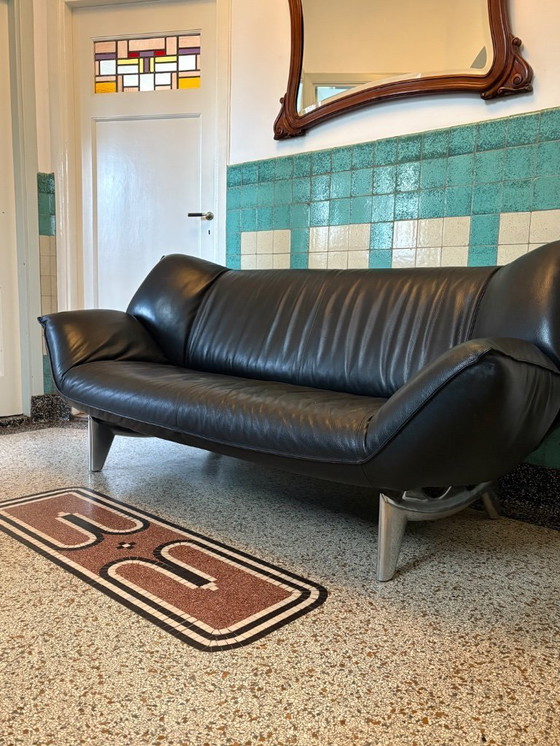 LEOLUX black leather 3-seater sofa, model TANGO,