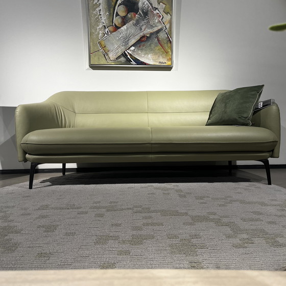 Leolux Lindo 3-seater sofa - W210 x D81 x H80 cm - Leather Senso 4980 Wasabi - Legs Epoxy E2200 Nuit Silk - Black plastic leg caps