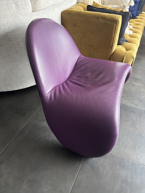 Introducing the Leolux Sella fauteuil, a striking piece that embodies modern elegance and comfort. This armchair, with its sleek and contemporary design, is upholstered in luxurious purple leather, making it a bold statement piece for any living space.