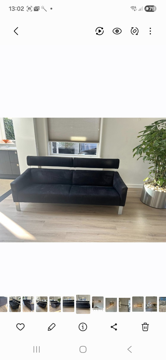 Beautiful Leolux 3-seater sofa upholstered in dark gray/black fabric. With two headrests.