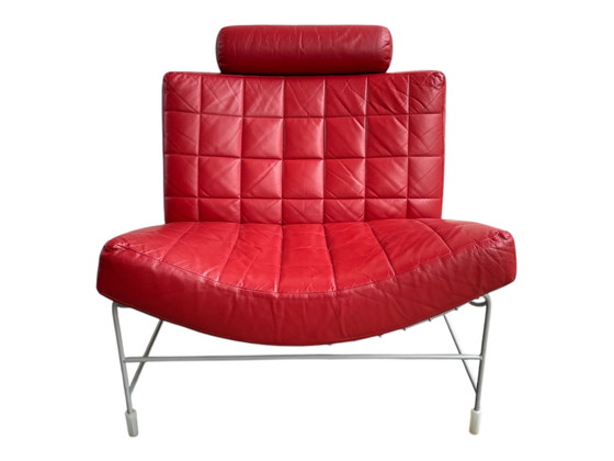 The Leolux Volare armchair, designed by Jan Armgard in 1998, is a wonderful example of modern design. With its airy metal base and red leather upholstery, this chair offers not only a visual statement, but also excellent seating comfort. The slightly curved seat and soft cushions provide a relaxing seating experience. Produced in 2012, this armchair is in very good condition and is a timeless piece that fits into any interior.