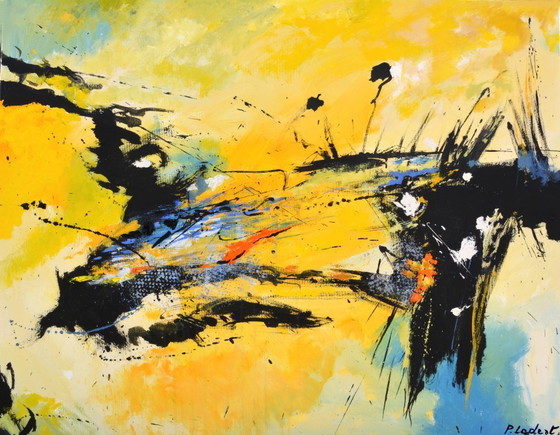 Discover "Life Movement," a captivating abstract artwork that evokes the dynamism and energy of life. Vibrant shades of yellow, blue, and orange blend harmoniously, creating a striking contrast with touches of deep black.