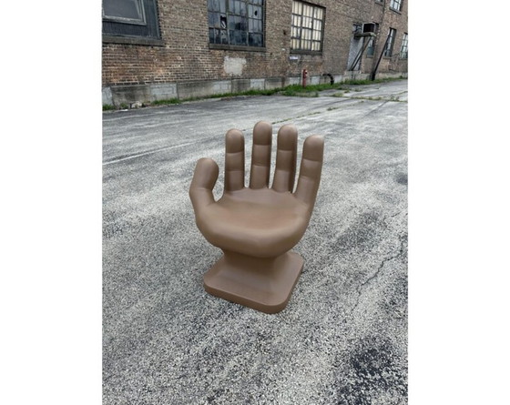 For sale is a new giant left hand-shaped chair. It is solid light brown/tan in color, manufactured and molded in Northern Illinois.