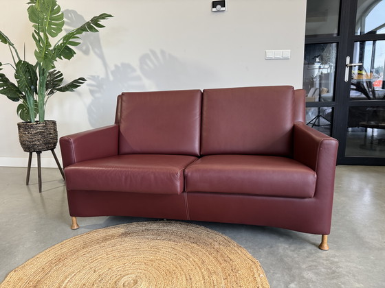 Beautiful Leolux Paian 2-seater sofa in brown/red. The sofa is in excellent condition, like new. Adjustable seat depth for optimal comfort.