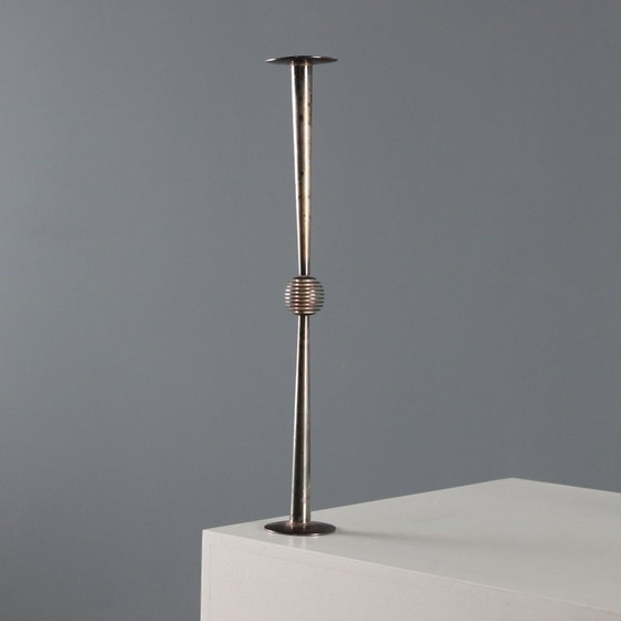 Silver-plated metal candlestick. Manufacturer's mark under the base.