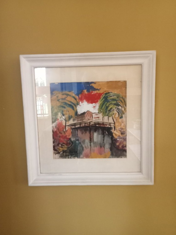 This small painting is a beautiful example of expressive art, in which vibrant colors and dynamic brushstrokes come together to create a captivating scene. The work is framed in an elegant white wooden frame that draws attention to the artwork itself. The combination of warm and cool tones creates a harmonious balance that can liven up any room. This painting is ideal for lovers of expressive and colorful artworks. Add a touch of artistic flair to your interior with this unique piece.