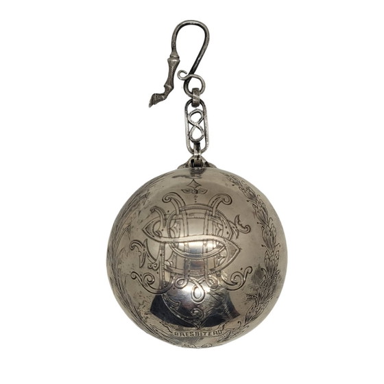 Liturgical Object "Catavinos", Silver Plate, circa 1900 - Spain. An original and curious liturgical object, made in silver plate around 1900. It could be a wine taster or a type of baptismal shell. It has a simple structure, a hemisphere hanging from a curious hook. This clasp is shaped like a horse's hoof, carved with great detail; even the horseshoe is visible. On the main part, the hemispherical bowl, appears the inscription "presbitero" (presbyter) as well as large engraved initials. A presbyter, in Catholicism, is an ecclesiastic who has been conferred, through the sacrament of Holy Orders, the second rank of the ecclesiastical hierarchy: priest, cleric, curate, chaplain, archpriest. This liturgical object, used for the celebration of the Eucharist, could be a wine taster or catavinos (wine taster). These are objects steeped in tradition, used since the 16th century. They were generally made of tin, silver, nickel silver, pewter, or other metals that do not transmit odors or flavors, thus ensuring the unalterable characteristics of the wine. In some cases, they featured inscriptions allegorical to the honesty of the taster or the virtue and quality of the wines being tasted. Furthermore, in this case, it comes with a chain and hook for easy transport. Materials: Silver plated Period: 20th century Country: Spain Good condition according to its age and use Dimensions: 15 x 8 x 8 cm Shipping of the product will be paid by the buyer according to the dimensions, weight, and destination. We will contact you to arrange the arrangement and agree on a quote. Shipping costs include custom-made professional packaging and personalized shipping, with a tracking number and warranty. The buyer will be responsible for paying any import duties and associated taxes in the destination country, if applicable. Please note the seller's disclaimer of liability for any customs charges, as these are levied in the destination country and the amount payable is determined by that country's customs office. If an export permit is required, the costs are the buyer's responsibility. The cost depends progressively on the value of the artwork to be exported.