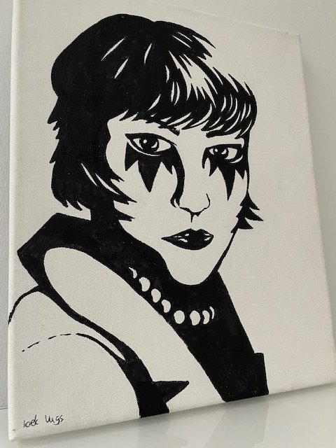 Sleek, expressive and full of character: this original painting by Loek Vugs is a real eye-catcher. In black and white and with minimalist lines, the artist captures an attitude reminiscent of pop art, new wave and underground culture. The powerful simplicity makes the work timeless and contemporary.