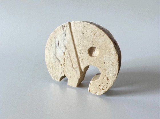 Lot of 5 vintage sculptures by Enzo Mari (1970s) for F.lli Mannelli. Original sculptures made of travertine. In excellent condition. Dimensions: L 7 cm x W 2 cm x H 7 cm. Italian design.