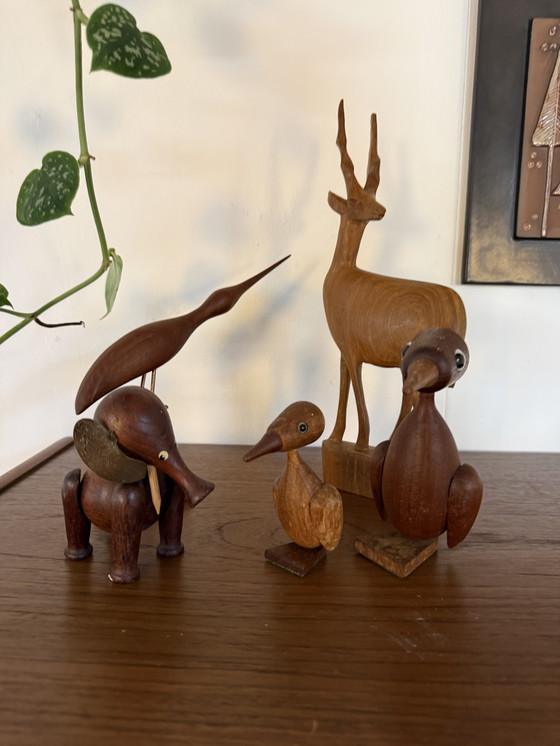 Lot of 5 teak figurines, partly designed by Kay Bojesen, Denmark, 1960s.