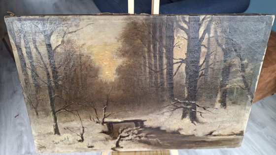 Atmospheric winter forest scene based on the work of the renowned Hague School master Louis Apol.