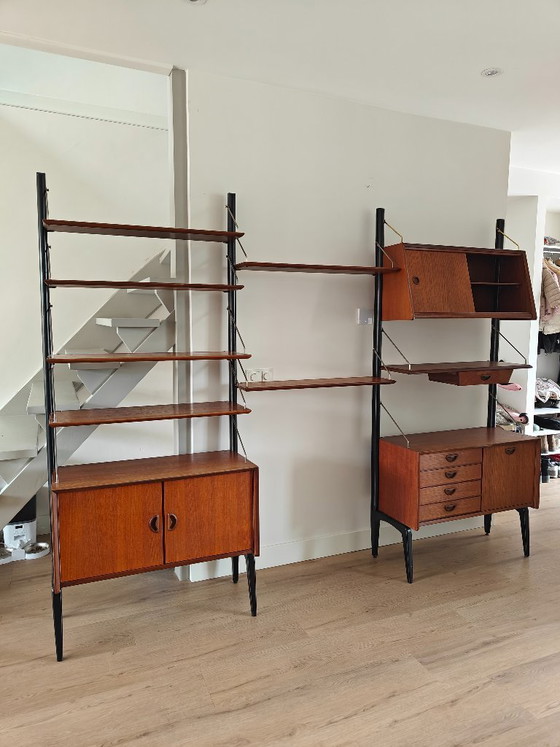 This modular wall cabinet by Louis van Teeffelen is a real eye-catcher for your interior. With its clean lines and warm wood tones, it brings a touch of mid-century modern style into your home. Perfect for displaying your favorite books or decorations. The cabinet offers flexible organization thanks to the adjustable shelves and provides ample storage space with its handy drawers and cabinets. Don't miss this opportunity to bring a piece of design history into your home!